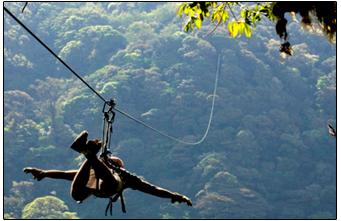 Llegaremos a realizar un rappel en donde tendrá la oportunidad de descender verticalmente 15 metros ayudado por una cuerda, seguidamente pasaremos tres cables más en los que tendremos la oportunidad de realizar superman! Continuaremos a realizar el Tarzan Swing donde subiremos a una plataforma para realizar un salto al vacío de 40 metros.