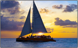 Day 8). Sailing through the sunset on the all-inclusive Marlin Del Rey Catamaran. (BF,L)